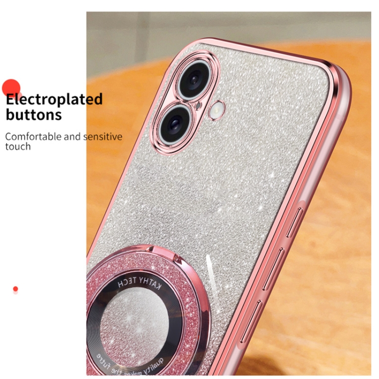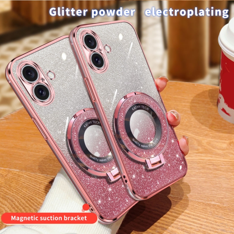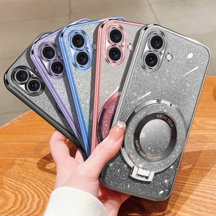 Funda TPU con Soporte Redondo y Purpurina Degradada para iPhone 16 (Negra)