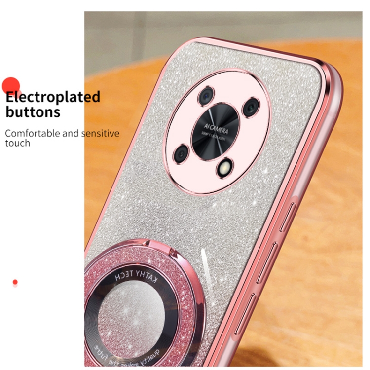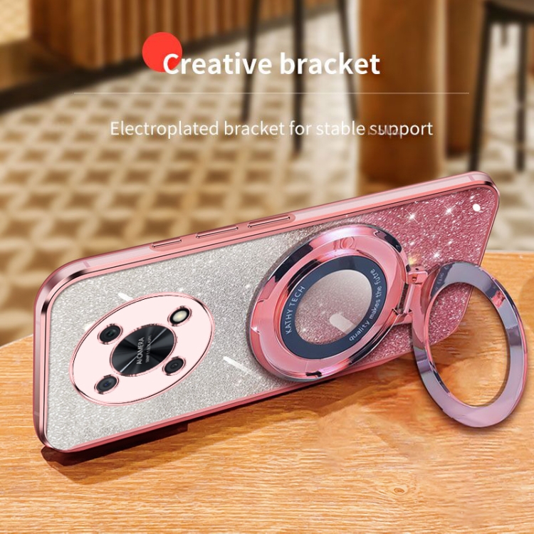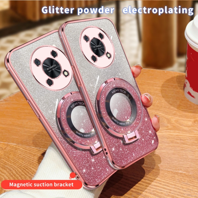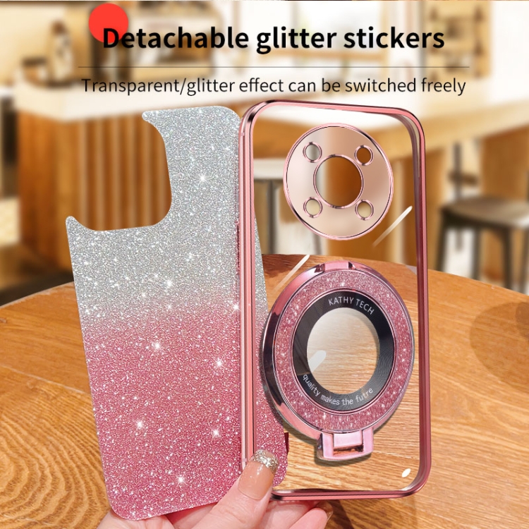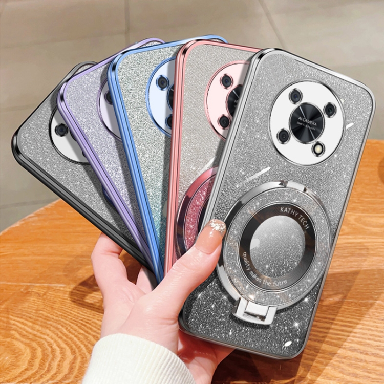 Funda TPU con Soporte Redondo y Purpurina Degradada para Huawei Enjoy 50 Pro (Plateada)