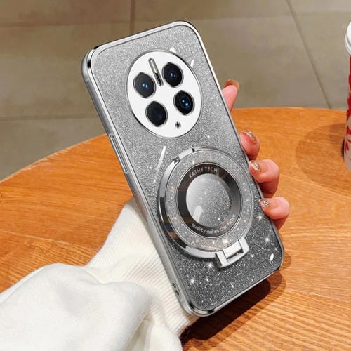 - 1x Funda TPU con Soporte redondo y purpurina degradada para Huawei Mate 50 Pro (Plateada)