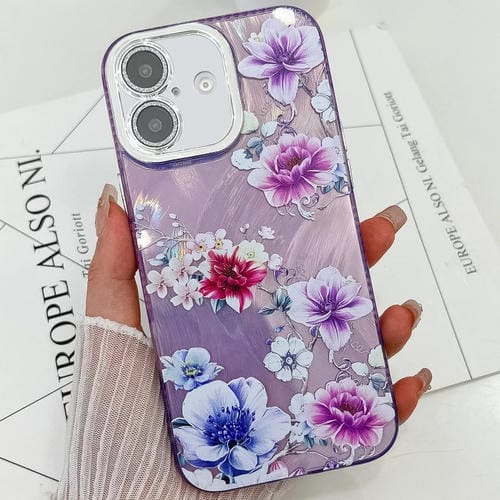 Funda TPU iPhone 16 Textura Plantas Flores Galvanizadas (Flores Moradas Fl1)