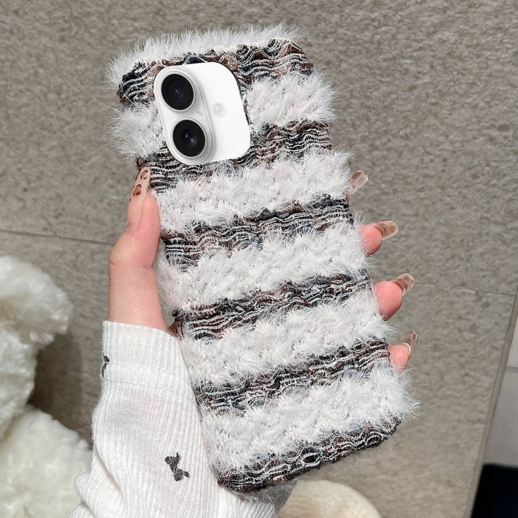 Funda TPU de Felpa para iPhone 16 con Tejido a Rayas (Negra)