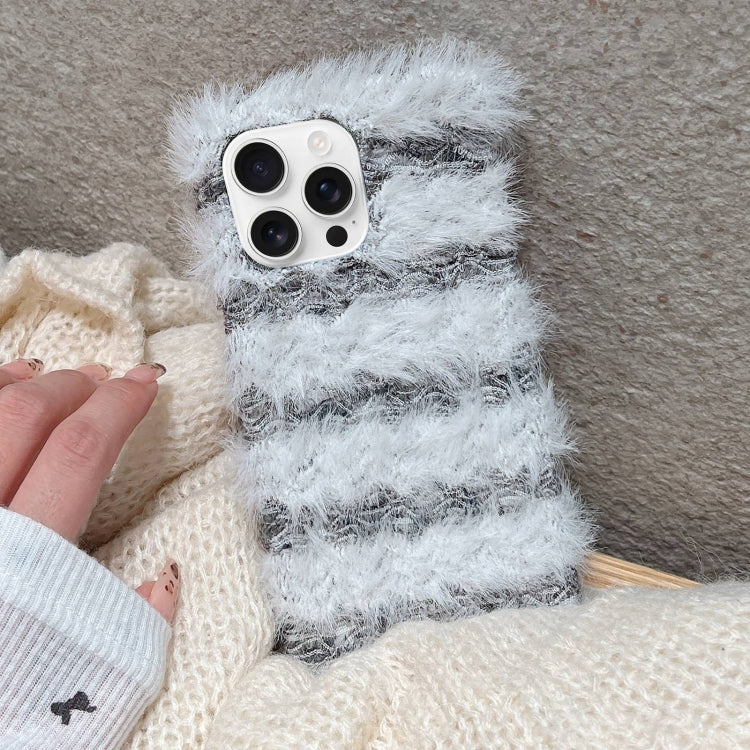 Funda TPU Felpa para iPhone 16 Pro Protección Tejido a Rayas (Gris)
