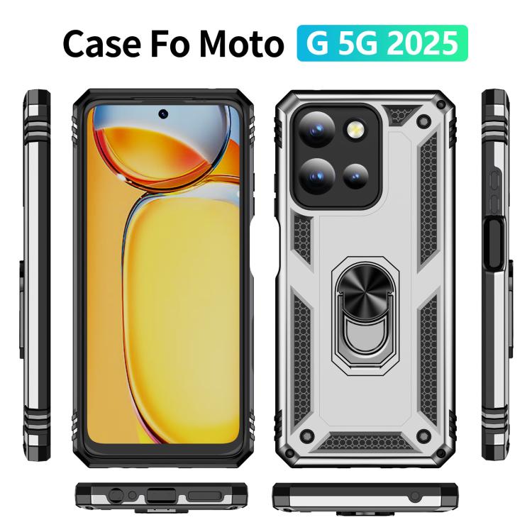 Funda TPU + PC para Motorola Moto G 5G (2025) a Prueba de Golpes con Soporte (Plateada)
