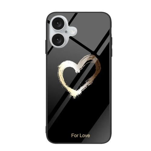 Funda de Vidrio Pintada para iPhone 16 Plus Función Protección (Amor Negro)