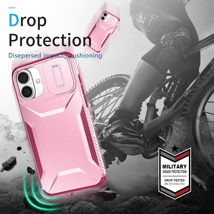 Funda Deslizante Camshield para iPhone 16 (Rosa + Rojo Rosa)