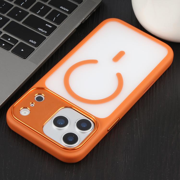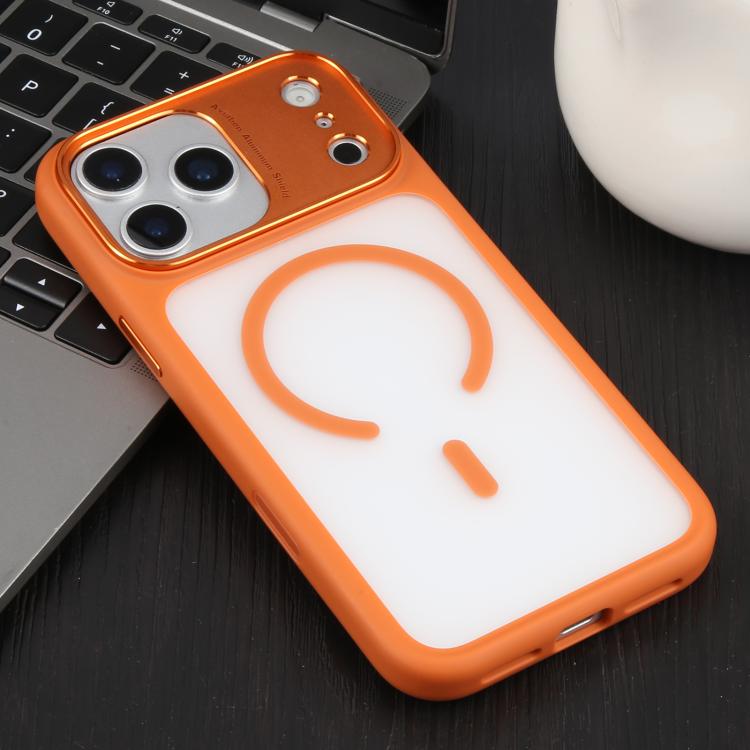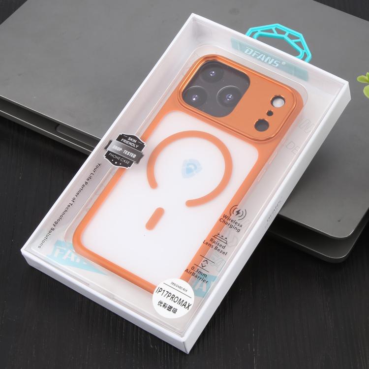 Funda DFANS DESIGN con marco de metal y textura de cuero esmerilado Magsafe para iPhone 17 Pro Max (naranja)