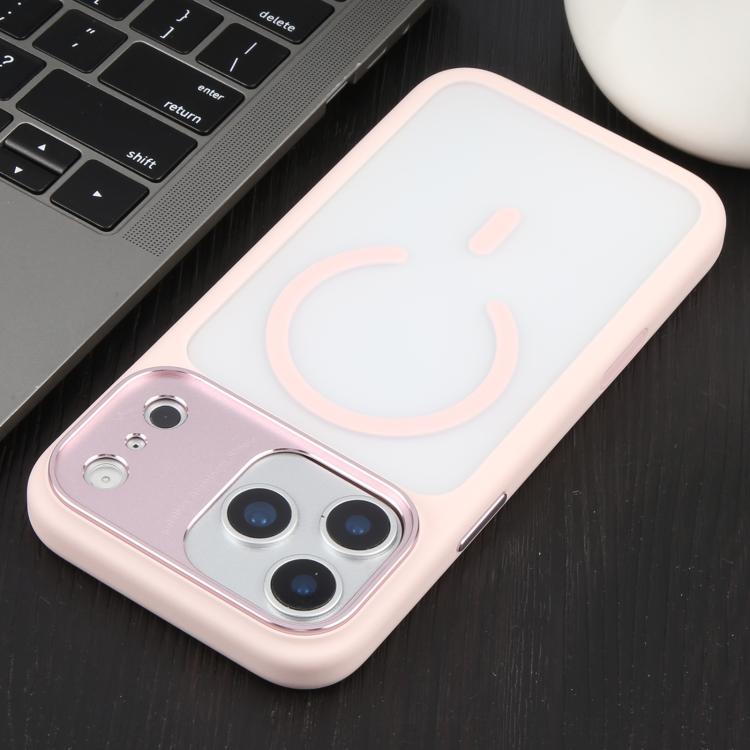 Funda DFANS DESIGN con marco de metal y textura de cuero esmerilado Magsafe para iPhone 17 Pro Max (rosa)