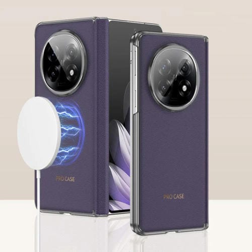 Funda Gkk Ultrafina de Cuero Liso con Bisagra y Magsafe para Oppo Find N5 (Morado)