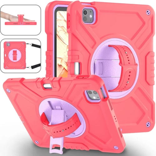Funda híbrida de silicona para iPad Pro 11 (2024) X Rotation PC con correa (Rojo y Morado)