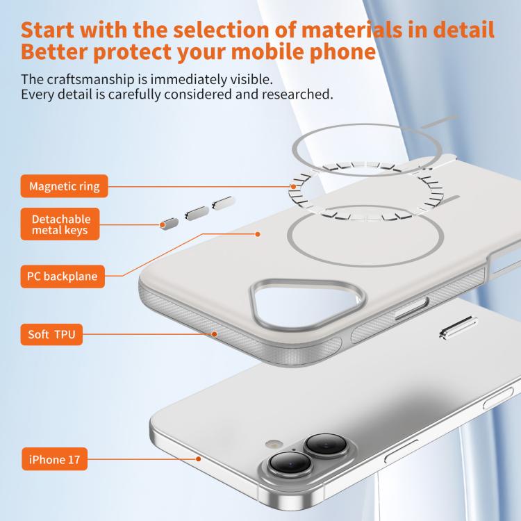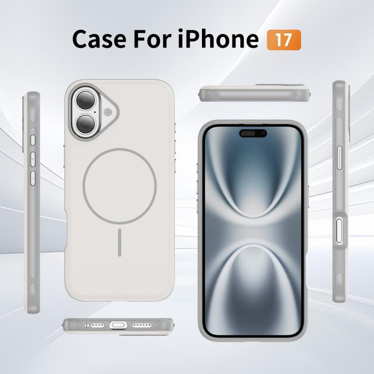 Funda híbrida de TPU y PC con MagSafe para iPhone 17, bicolor (gris y blanco).