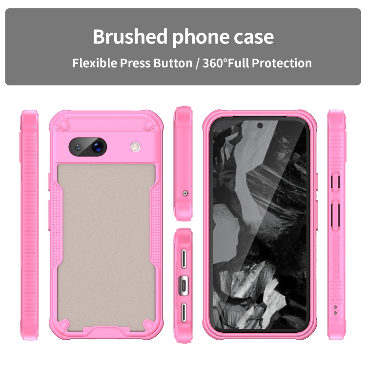 Funda híbrida TPU y PC con protección glaseada para Google Pixel 8A (Rosa)