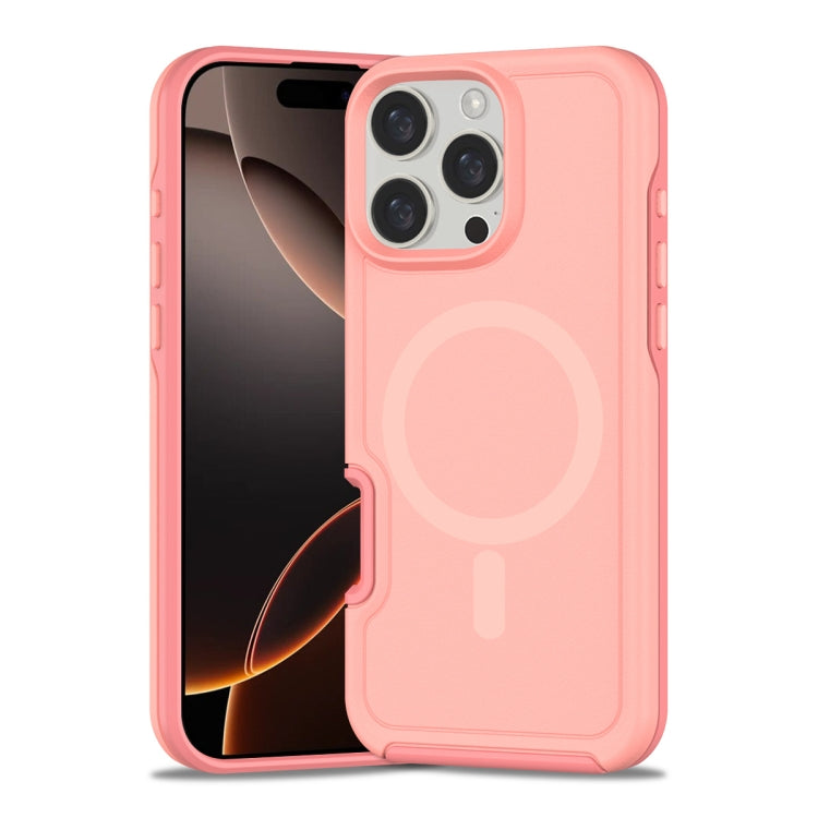 Funda Híbrida TPU y PC para iPhone 16 Pro Max con Protección Magsafe y Antigolpes (Rosa Claro y Rojo Coral)