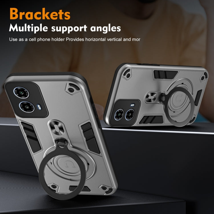 Funda híbrida TPU y PC con soporte giratorio 360° y anillo metal para Motorola Moto G34 (Gris Plateado)