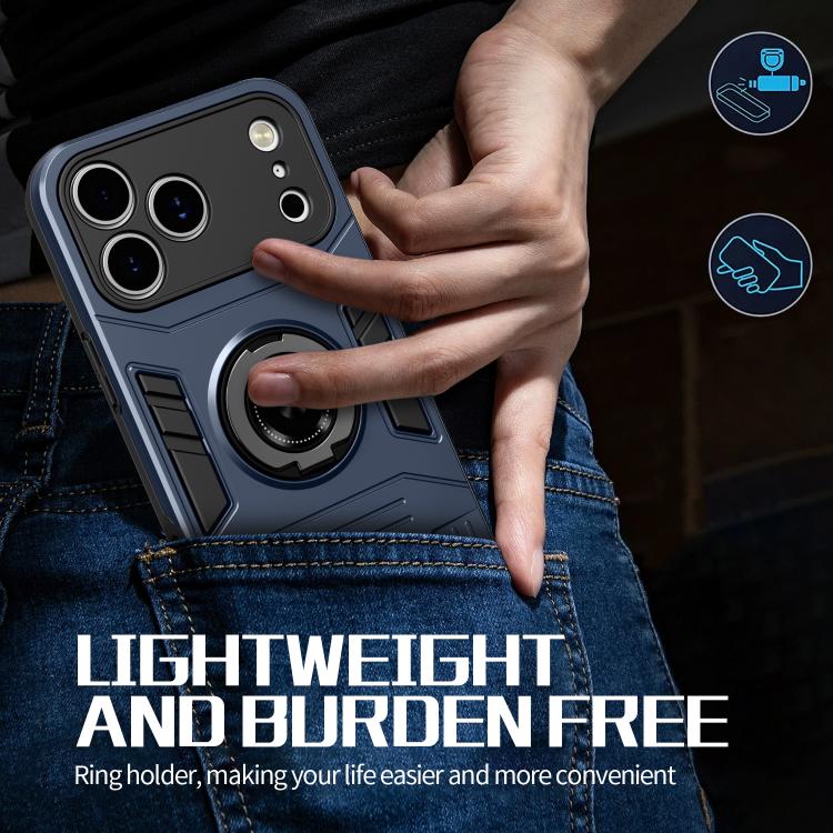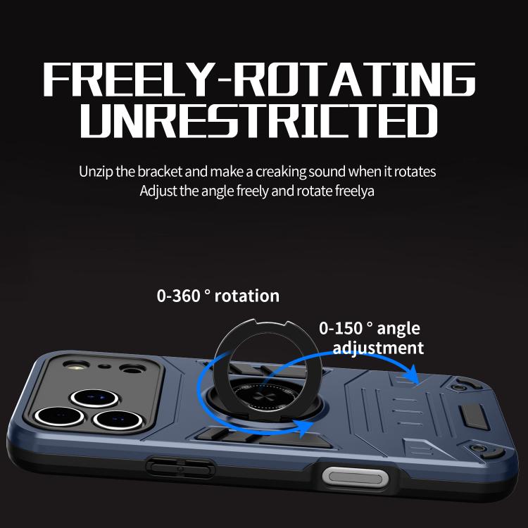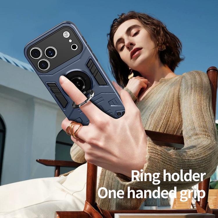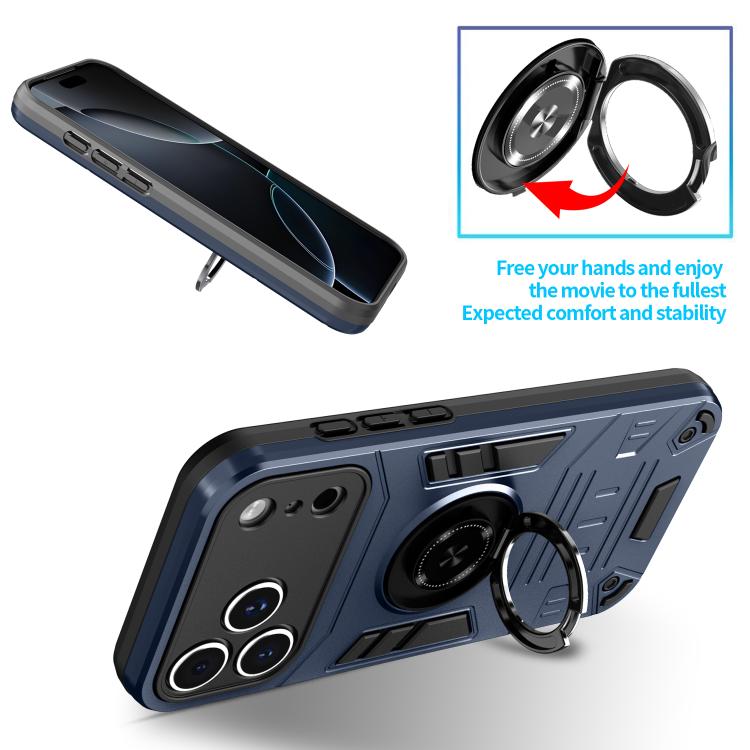 Funda híbrida de TPU y PC con soporte giratorio para iPhone 17 Pro (azul real)