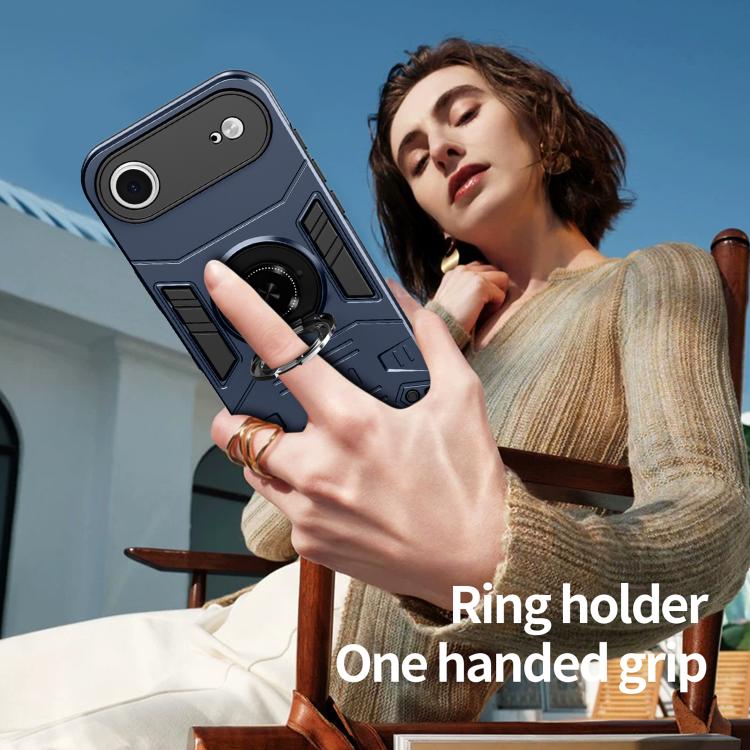 Funda híbrida de TPU y PC con soporte giratorio para iPhone Air (azul real)