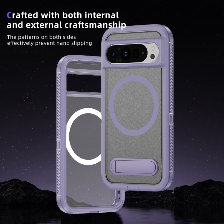 Funda híbrida TPU y PC con Soporte Magsafe para Google Pixel 9 Pro (Transparente y Morada)