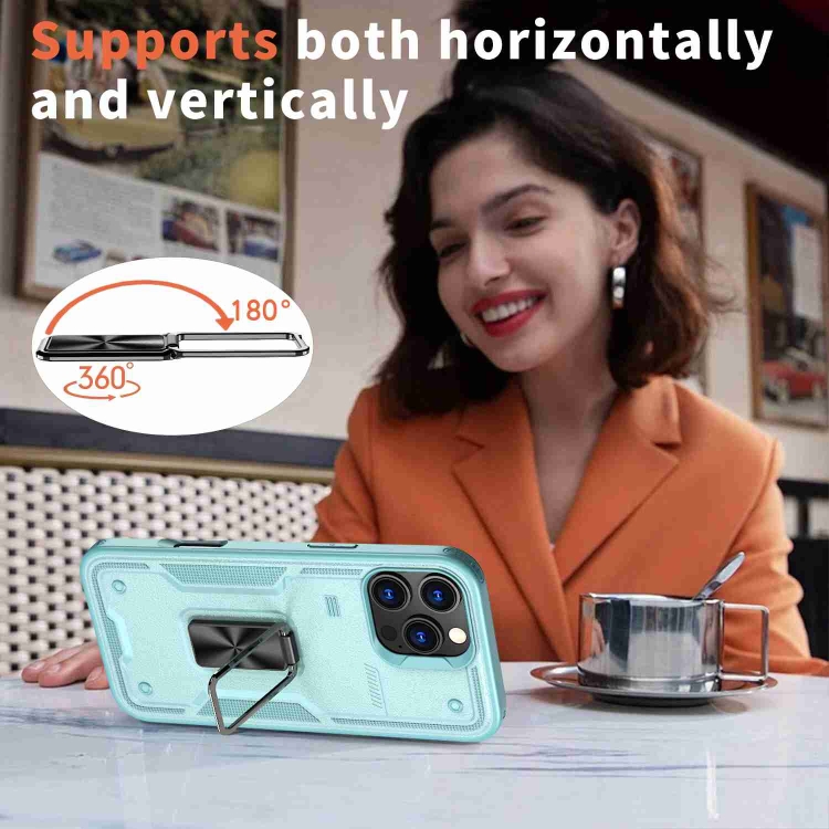 Funda híbrida TPU y PC con soporte para anillo iPhone 16 (Azul)