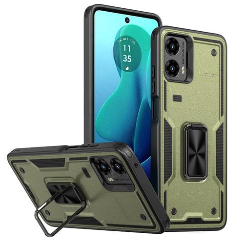 Funda Híbrida TPU y PC con Soporte para Anillo Motorola Moto G 5G (2024) (Verde Oliva)