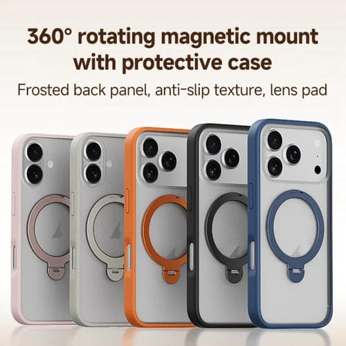 Funda híbrida de TPU y PC Magsafe para iPhone 17 ZGA con soporte pivotante de 360 grados (negro)