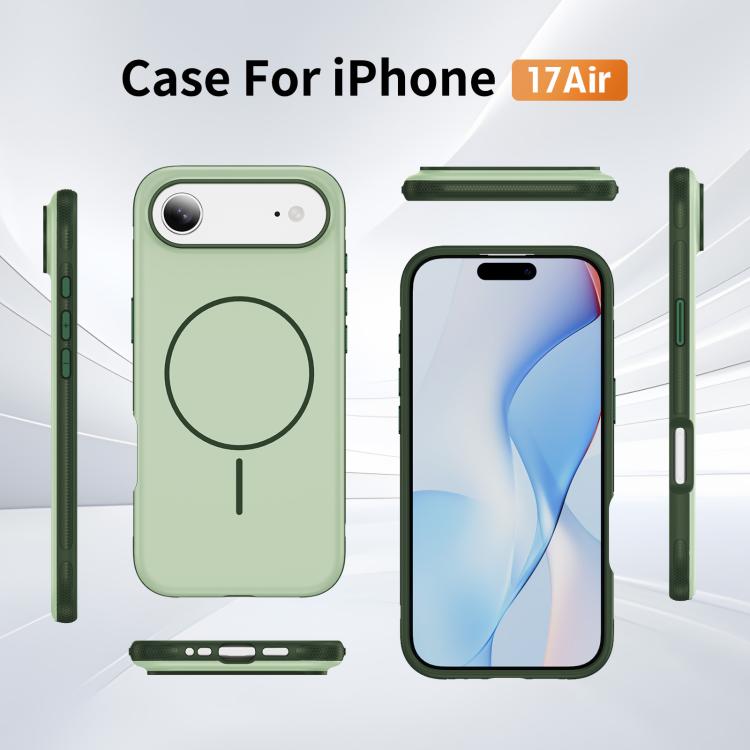 Funda híbrida de TPU y PC para iPhone 17 Air, imitación MagSafe original, bicolor (verde)