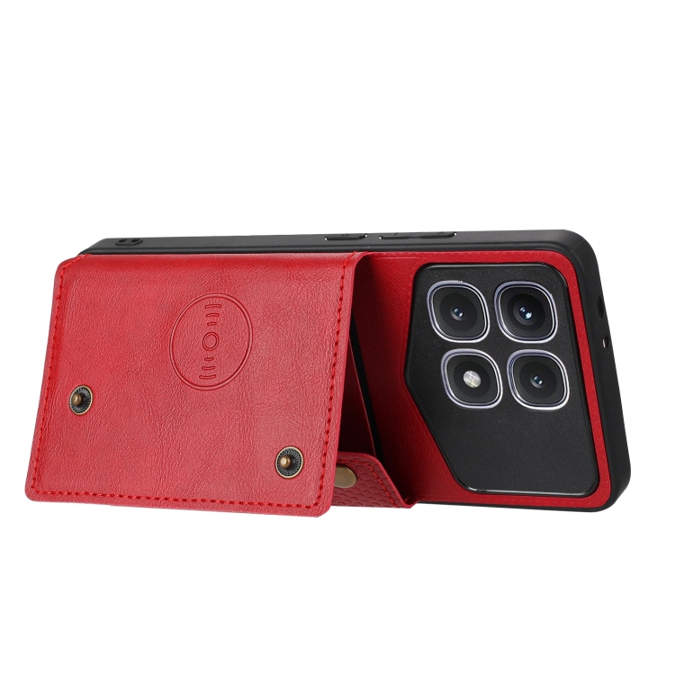 Funda Magnética para Teléfono con Ranuras para Tarjetas y Doble Hebilla para Xiaomi Redmi K70 Ultra (Rojo)