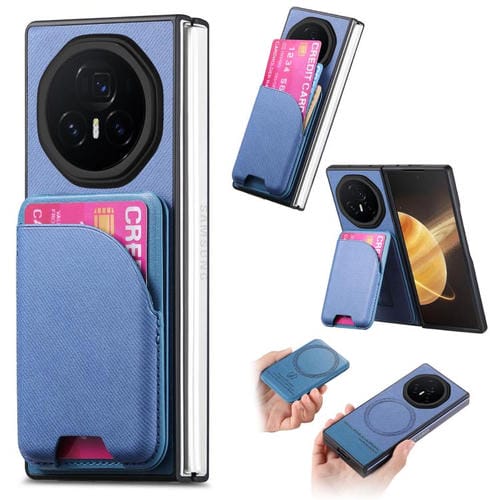 Funda Magnética para Honor Magic V3 con Tapa Trasera de Cuero y Sarga (Azul)