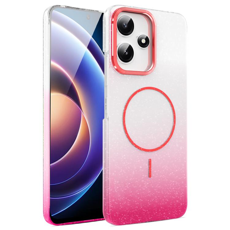 Funda MagSafe a prueba de golpes para Xiaomi Poco X7 Pro con purpurina dorada y degradado (roja)