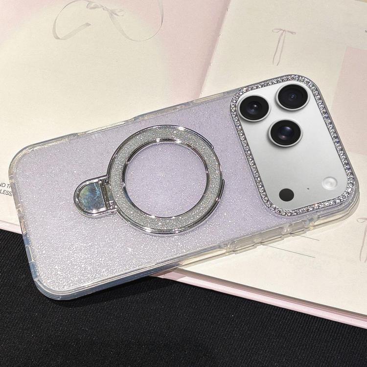 Funda MagSafe con diamantes y purpurina degradada para iPhone 17 Pro (morado claro)
