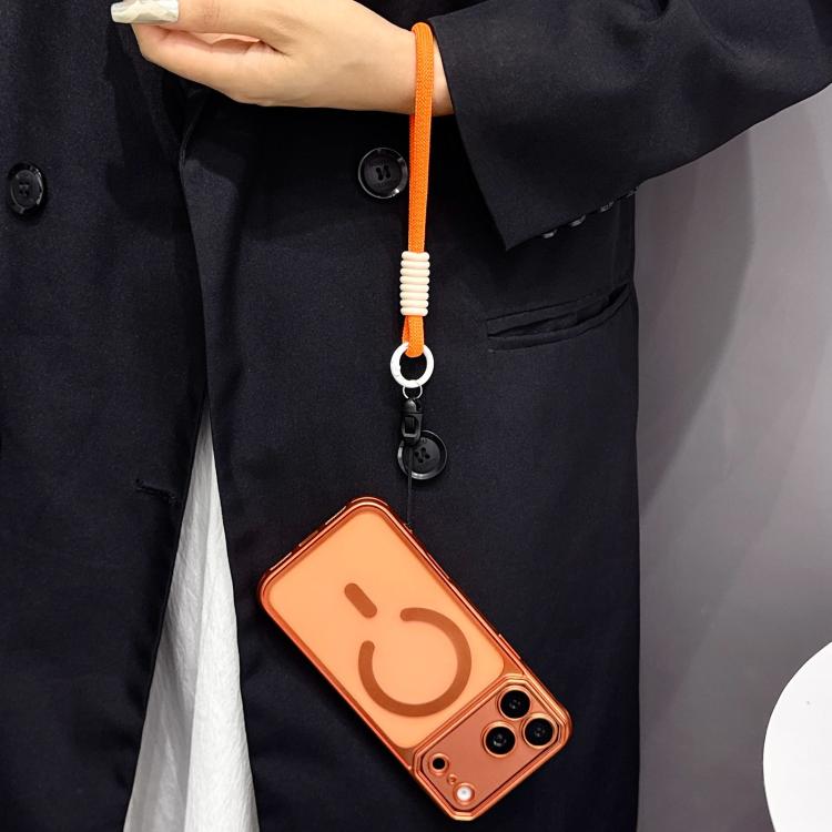 Funda MagSafe de TPU electrochapado mate con ventana grande para iPhone 17 Pro Max y correa de mano (naranja)