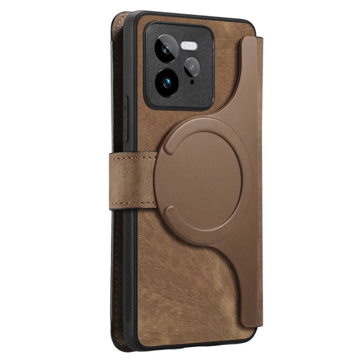 Funda Neo Magsafe Rfid Antirrobo de Cuero Retro para Realme Gt7 Pro (Marrón)