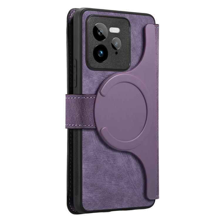 Funda Neo Magsafe Rfid Antirrobo de Cuero Retro para Realme Gt7 Pro (Morada)