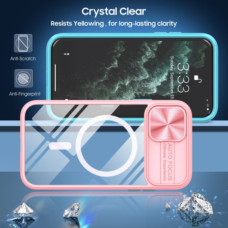 Funda para iPhone 11 con Cubierta Deslizante Acrílico Transparente PC TPU Magsafe (Rosa + Cian)