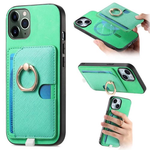 Funda para iPhone 11 Pro Cuero con Ranuras para Tarjetas y Anillo (Verde)