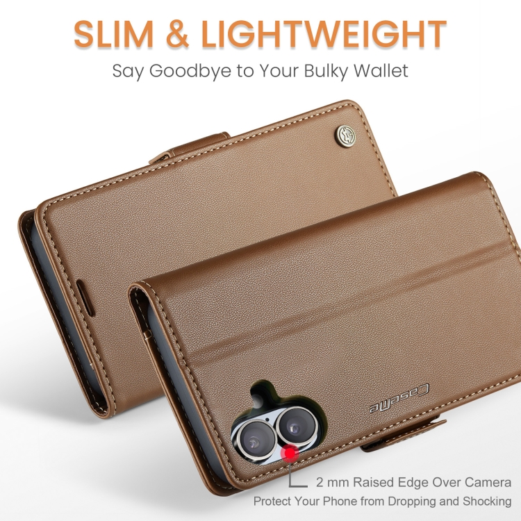 Funda para iPhone 16 Caseme 023 con Hebilla de Mariposa Textura de Lichi Antirrobo Rfid (Marrón)