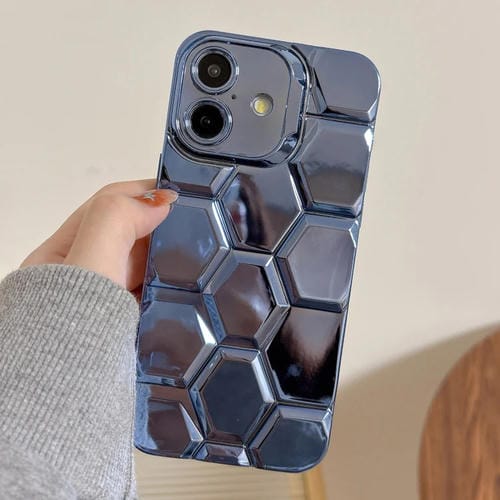 Funda para iPhone 16 Grabado Láser Galvanoplastia Diseño Panal 3D (Azul)