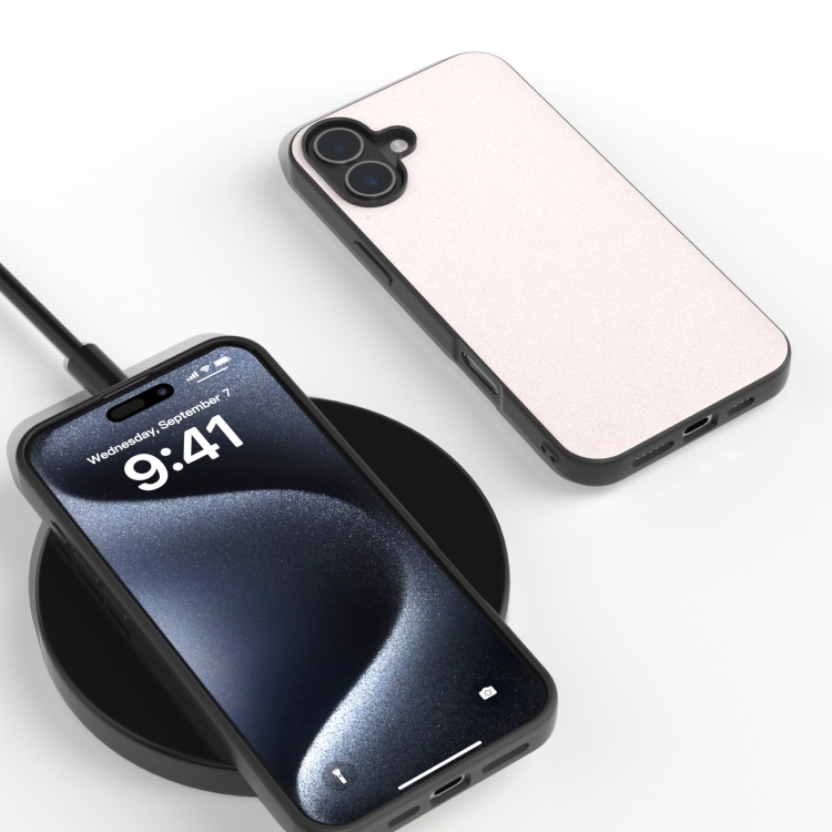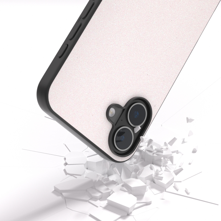 Funda para iPhone 16 con Marco Negro y Purpurina a Prueba de Golpes (Blanca)
