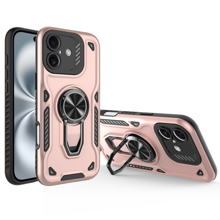 Funda para iPhone 16 con Soporte Giratorio de Metal y Carcasa Magnética de TPU y PC (Oro Rosa)