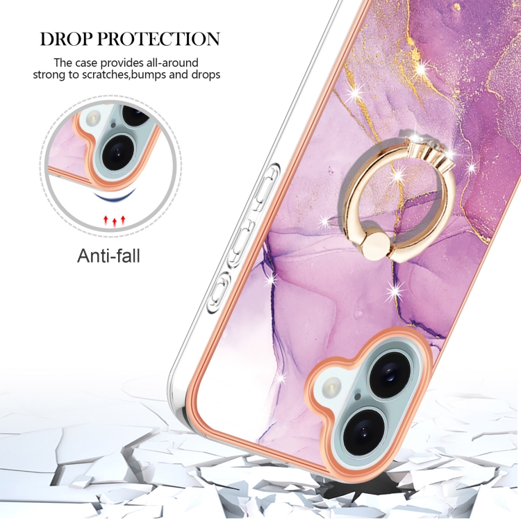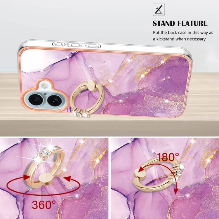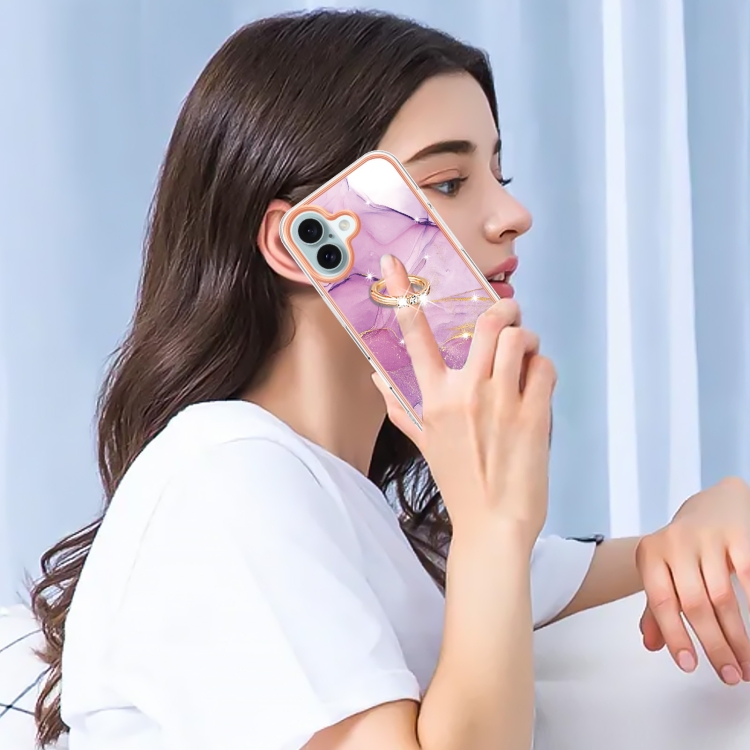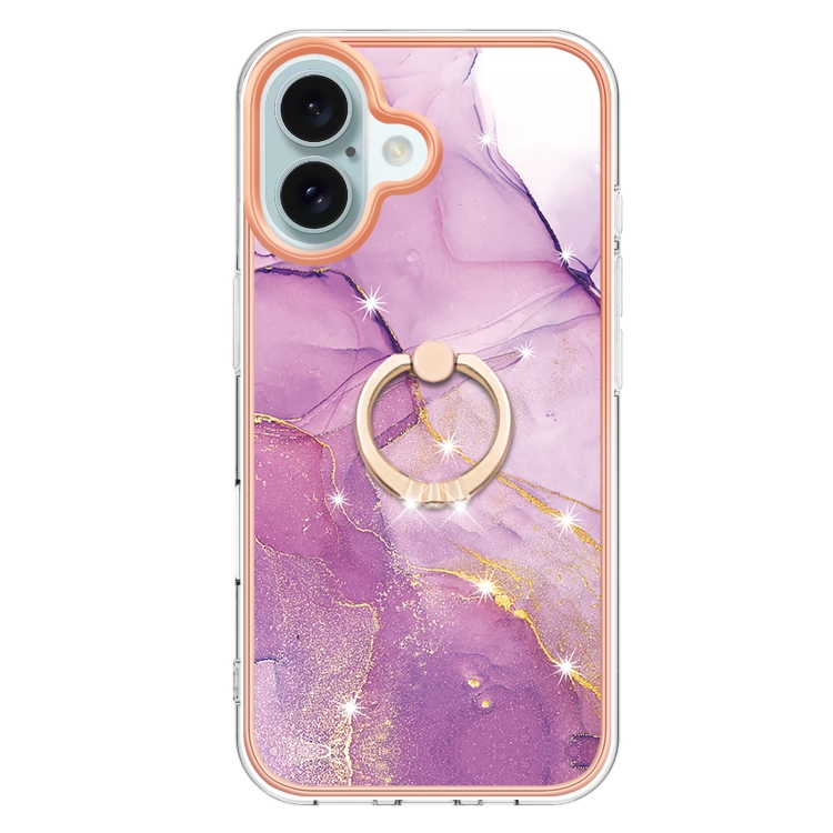 Funda para iPhone 16 con Soporte para Anillo y Revestimiento Mármol Imd TPU (Morado)