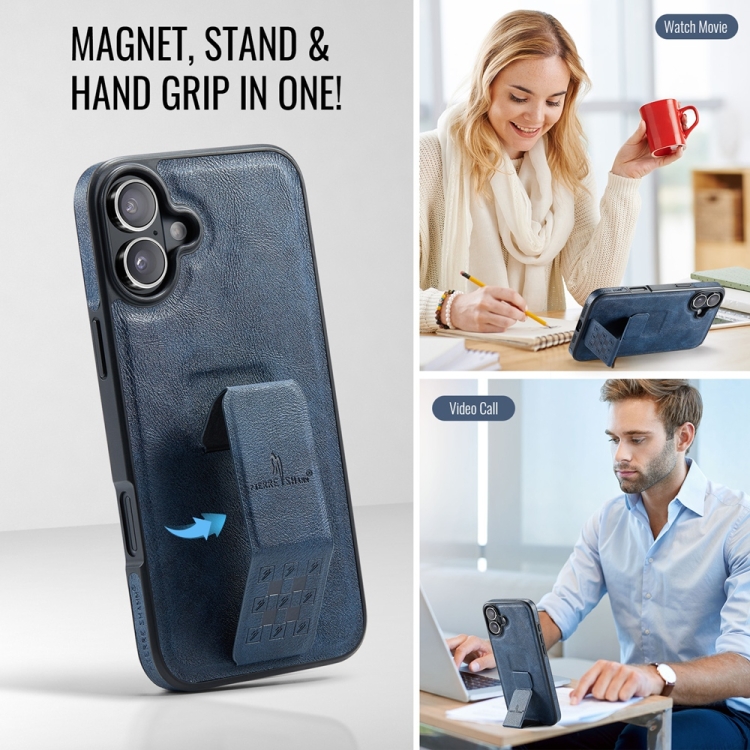 Funda para iPhone 16 Fierre Shann Soporte Trasero Cuero de Vaca con Cera de Aceite (Azul)