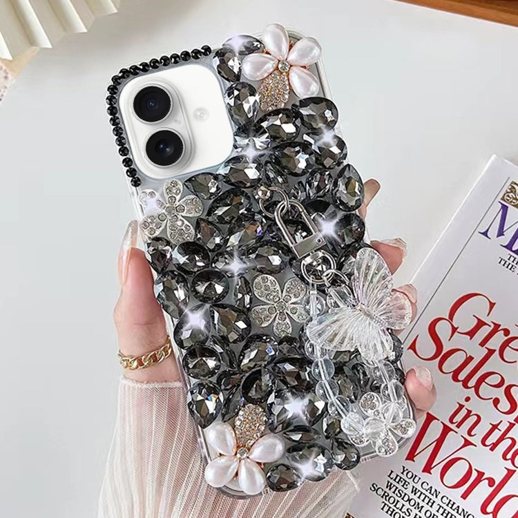 Funda para iPhone 16 Hecha a Mano con Incrustaciones de Diamantes y Mariposas (Negra)