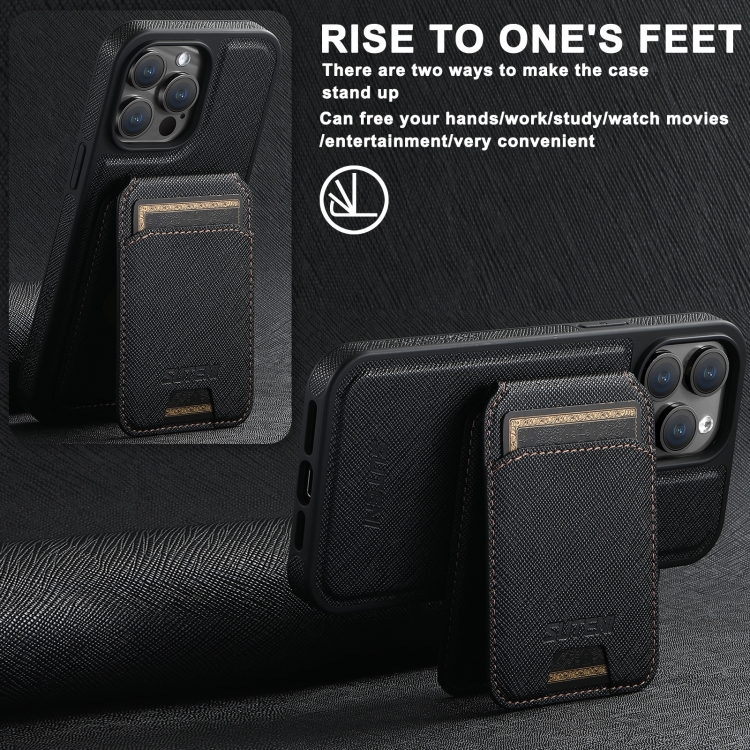 Funda para iPhone 16 Suteni M2 Parte Trasera Tarjeta Vertical Magsafe Grano Cruzado (Negra)