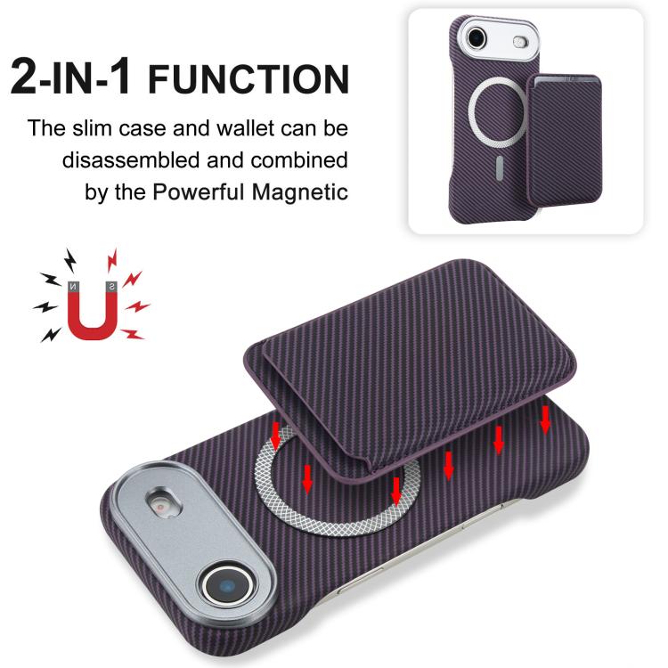 Funda para iPhone Air con tarjetero magnético MagSafe de fibra de carbono (morada)
