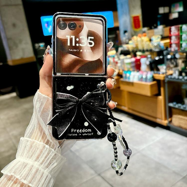 Funda para Motorola Razr 60 Ultra con purpurina y diseño de lunares y lazo (negra)