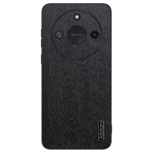 Funda para Teléfono Honor X60 a Prueba de Golpes Cuero con Corteza de Árbol (Negro)