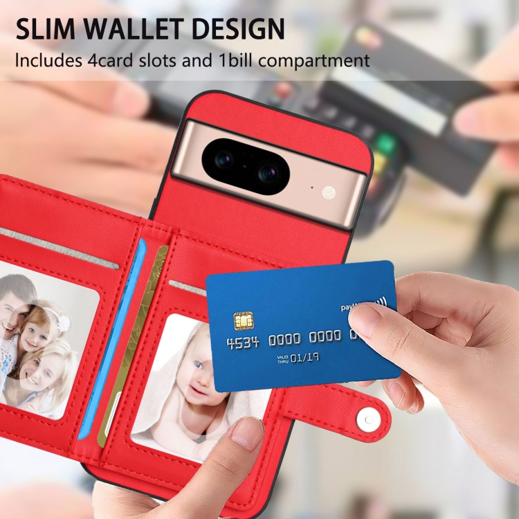 Funda Antirrobo con Botón y Tarjetero RFID para Google Pixel 8A (Roja)