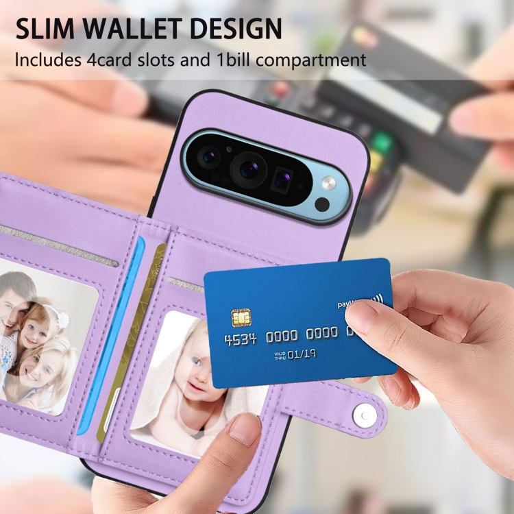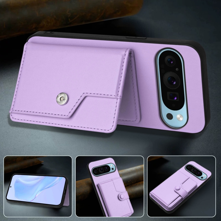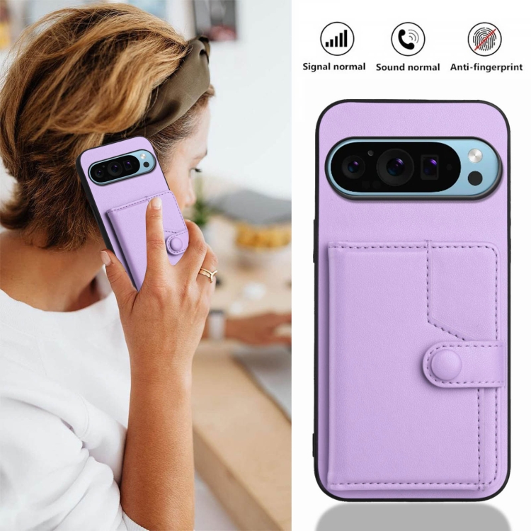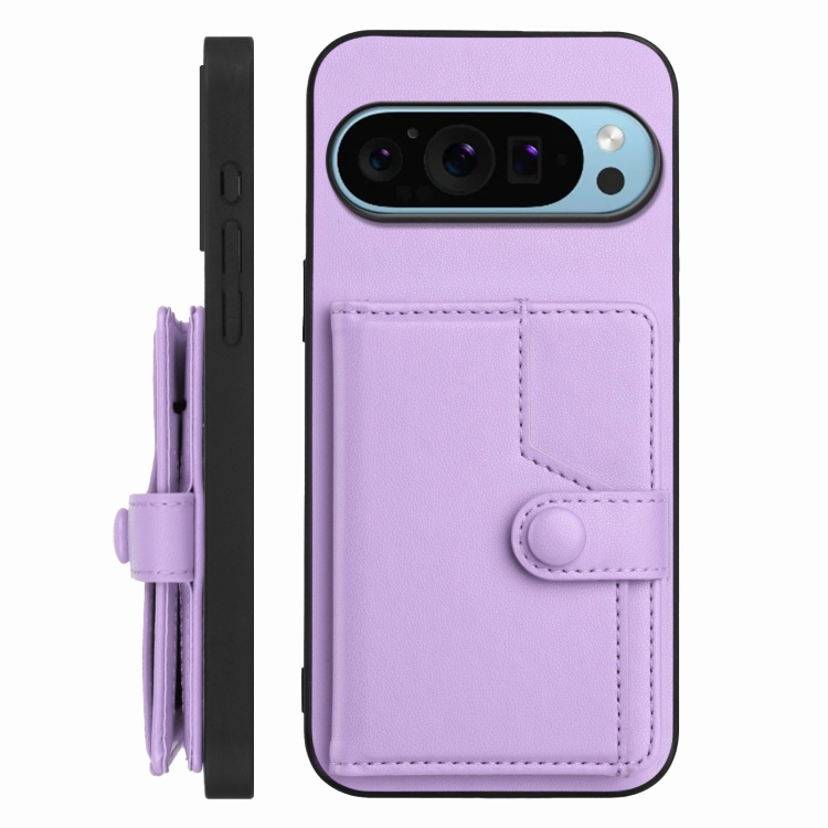 Funda Antirrobo con Botón y Tarjetero RFID para Google Pixel 9 Pro (Morado)