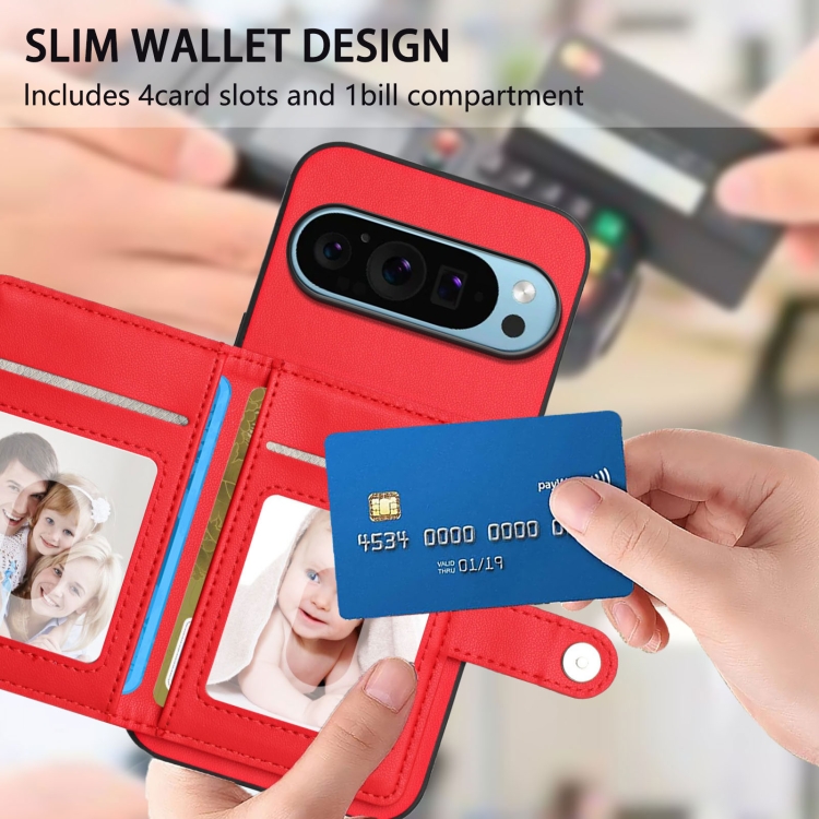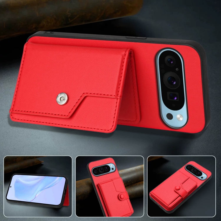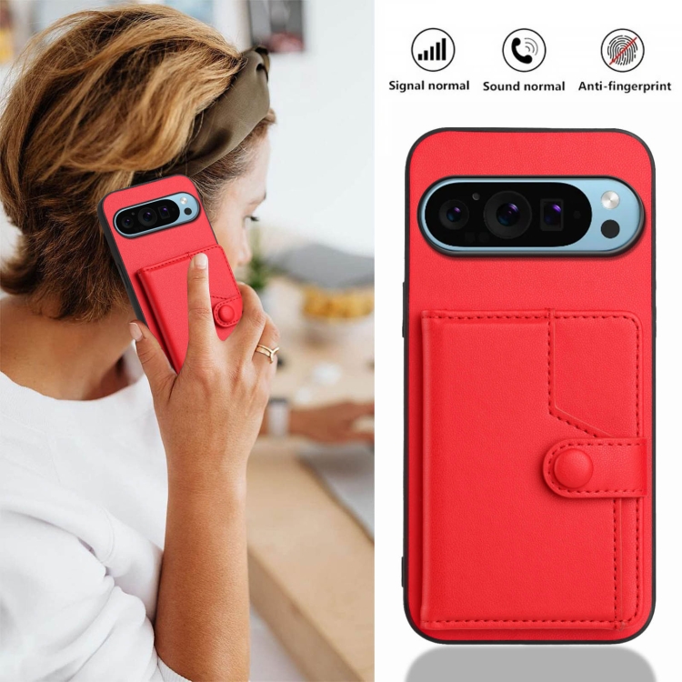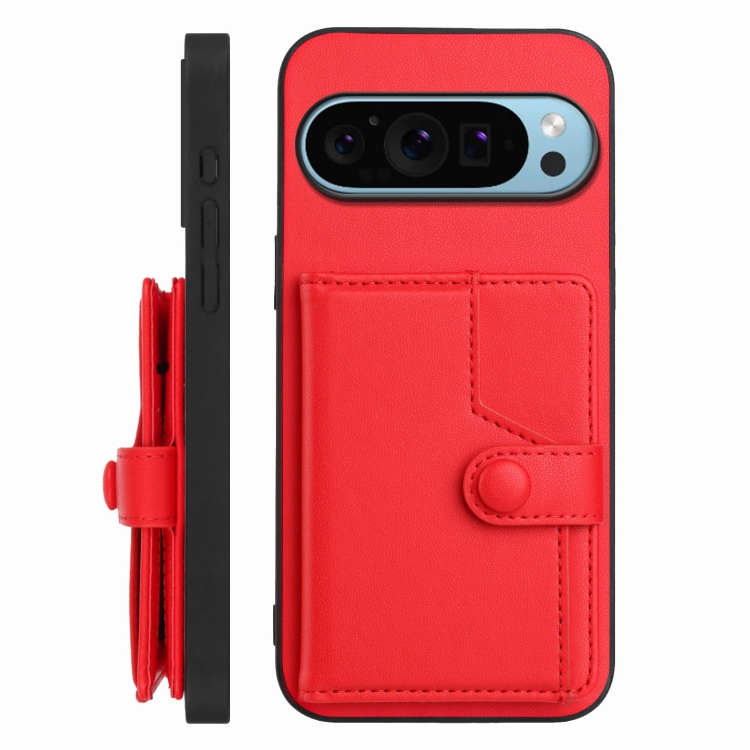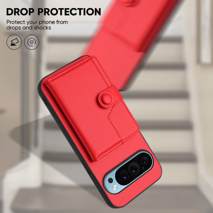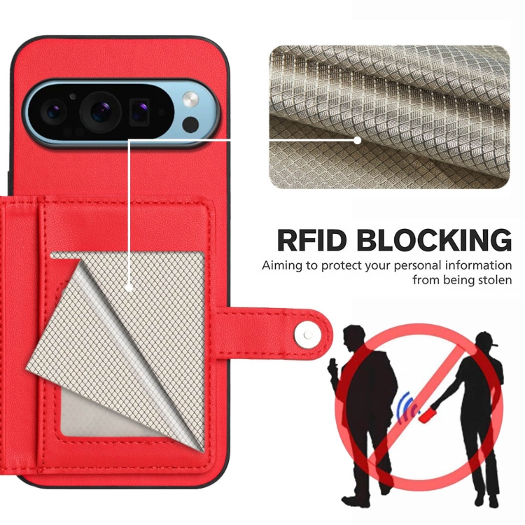 Funda para Teléfono Antirrobo con Botón y Tarjetero RFID para Google Pixel 9 (Roja)