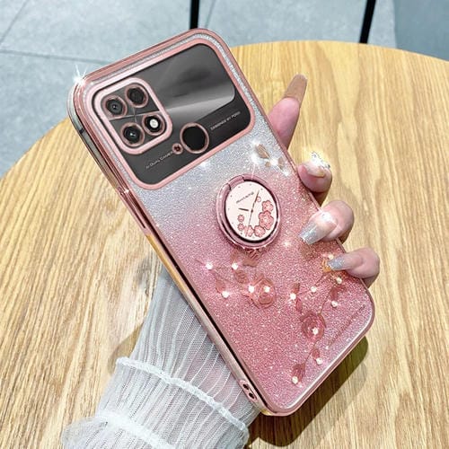 Funda para Teléfono con Anillo de Flores Inmortal con Purpurina Degradada para Xiaomi Poco C40 4G, Todo Incluido (Rosa)