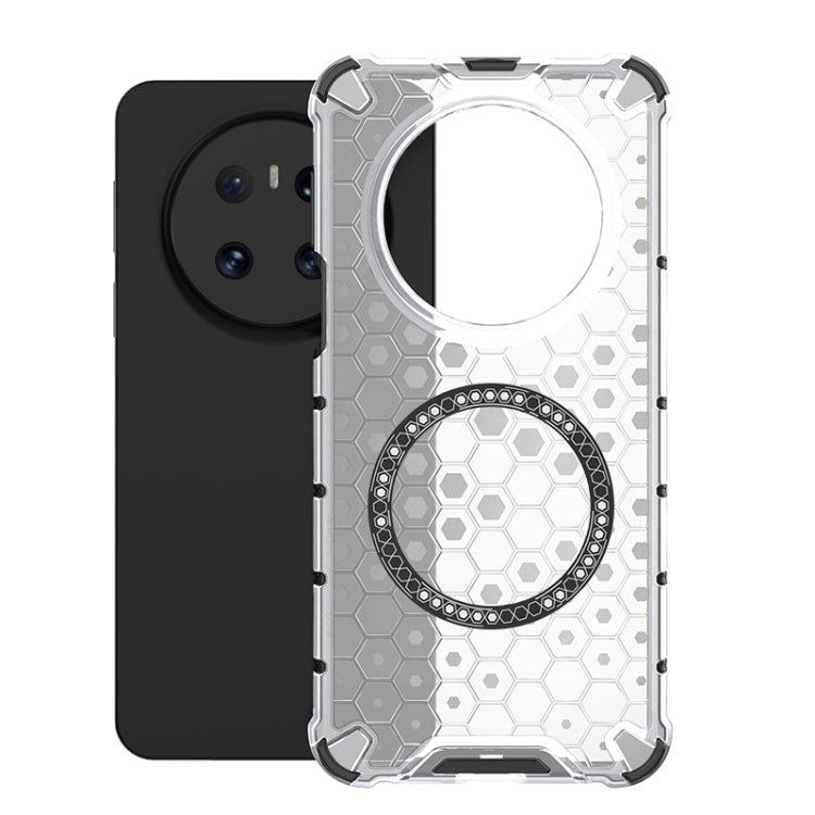 Funda para Teléfono Huawei Mate 70 con Anillo Magnético, Antigolpes y Diseño Panal (Blanca)