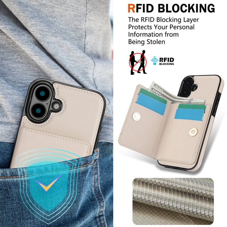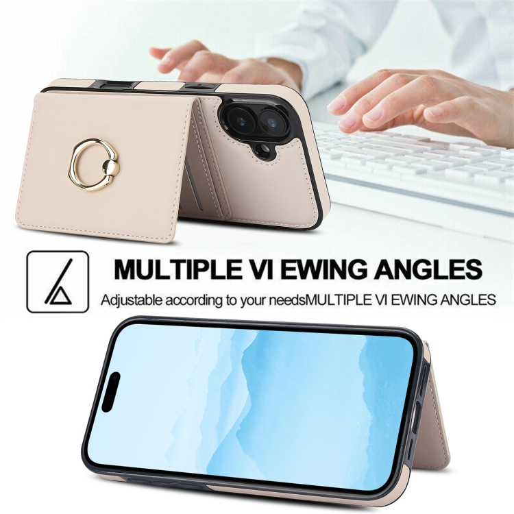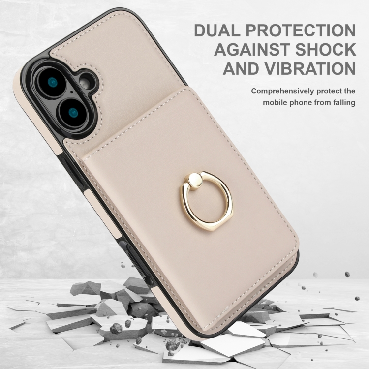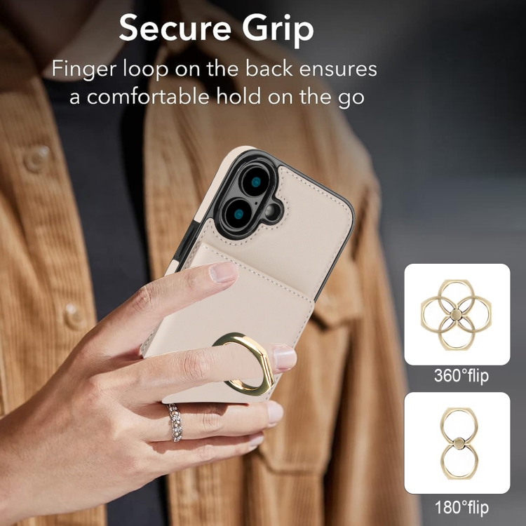 Funda para Teléfono con Anillo y Tarjeta Antirrobo Rfid para iPhone 16 (Blanca)